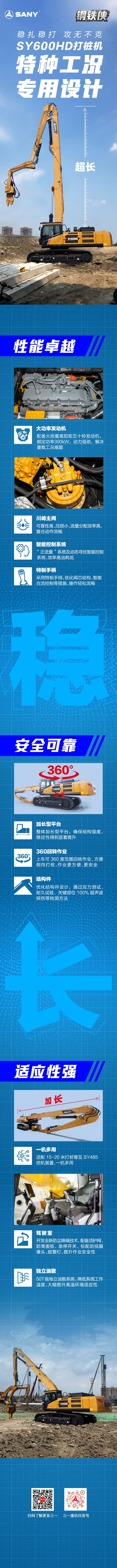 适配(pei) 15-20 米打桩臂及(ji) SY485挖機(jī)裝(zhuang)置,一(yi)機(jī)多(duo)用(yong)