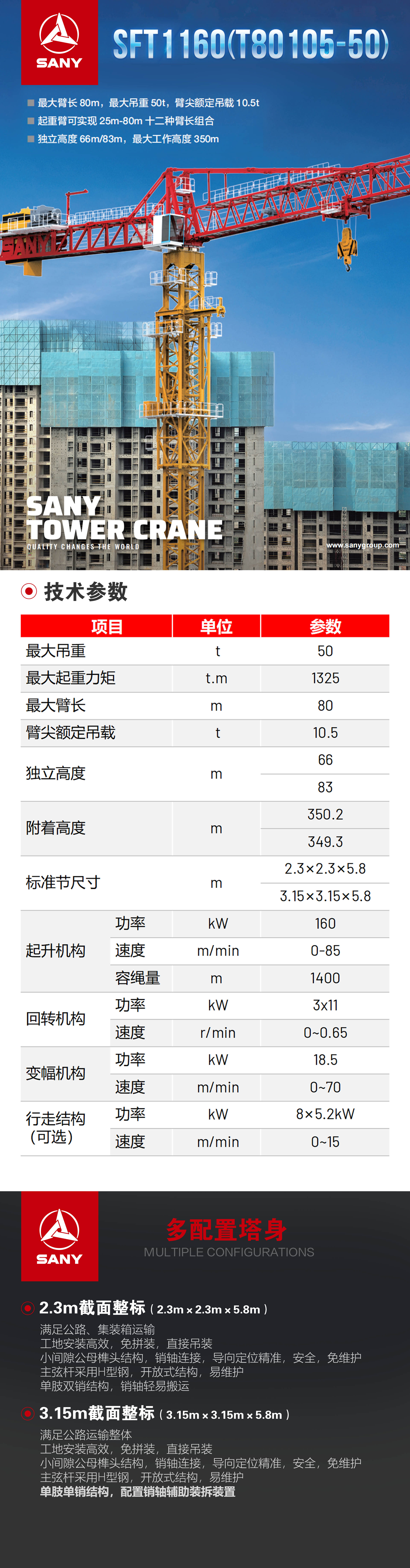 房屋建(jian)筑 SFT1160 (T80105-50)平头塔式(shi)起重(zhong)機(jī)